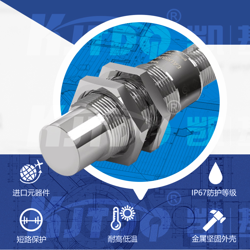 凱基特全金屬接近開關檢測各種金屬物體,快速,無觸點,壽命極長,動作可靠、性能穩定、頻率響應快、使用壽命長、抗干擾能力強、防水、防震、耐腐蝕等特點。