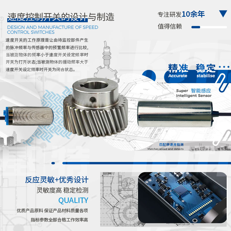 凱基特速度控制開(kāi)關(guān)產(chǎn)品主要針對(duì)客戶現(xiàn)場(chǎng)的實(shí)際需求而研制,產(chǎn)品用電范圍廣泛。產(chǎn)品對(duì)電機(jī)及機(jī)械傳動(dòng)裝置常出現(xiàn)的堵轉(zhuǎn)、卡轉(zhuǎn)、超載、慢轉(zhuǎn),皮帶打滑、傳動(dòng)鏈(帶)脫落、傳動(dòng)軸斷裂等電氣及工藝出現(xiàn)的故障均能有效及時(shí)的處理。可起到保障生產(chǎn),維護(hù)設(shè)備的作用。