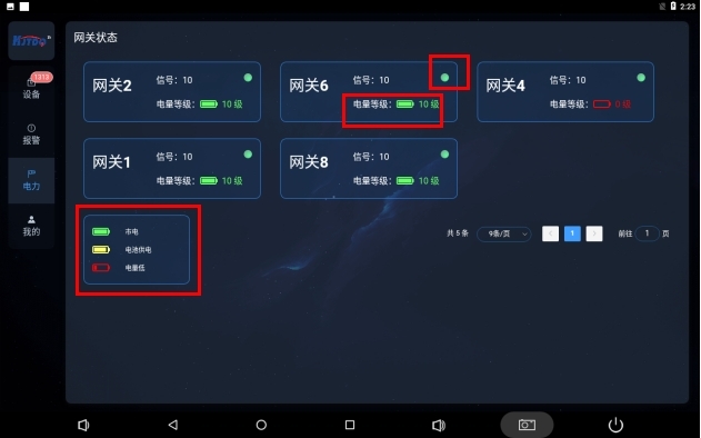 電力頁面展示整套無線系統(tǒng)里無線中繼器和無線智能網(wǎng)關(guān)的在線監(jiān)護(hù),網(wǎng)關(guān)設(shè)計(jì)按照業(yè)主要求的供電方式給出設(shè)計(jì),供電組成可在市電供電,電池供電,光伏供電3種方式下自由組合和自動(dòng)切換。