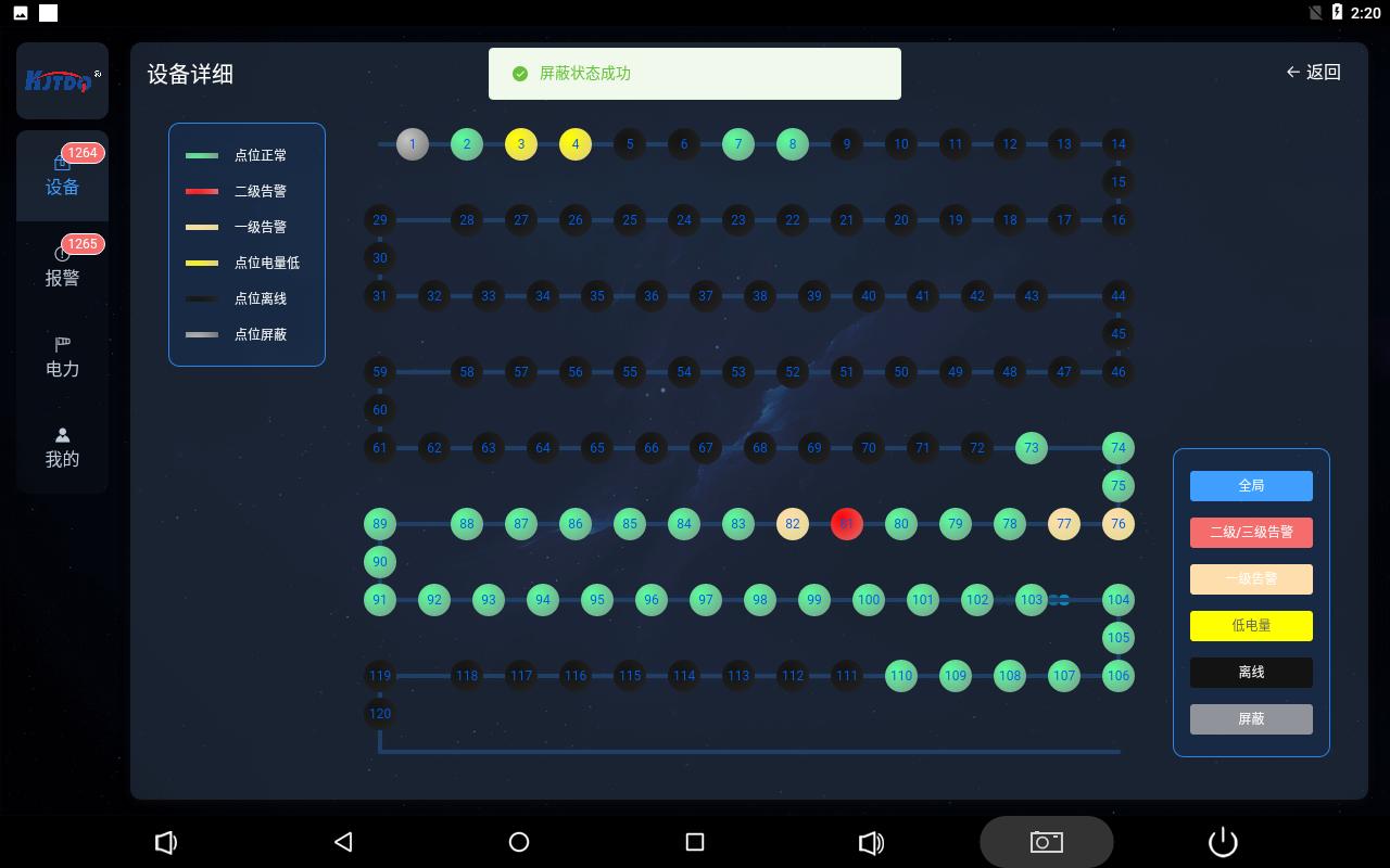 點(diǎn)擊圓圈彈出對應(yīng)保護(hù)裝置的詳細(xì)信息,并且可以設(shè)置保護(hù)裝置的屏蔽狀態(tài),手動(dòng)解除二級告警狀態(tài)