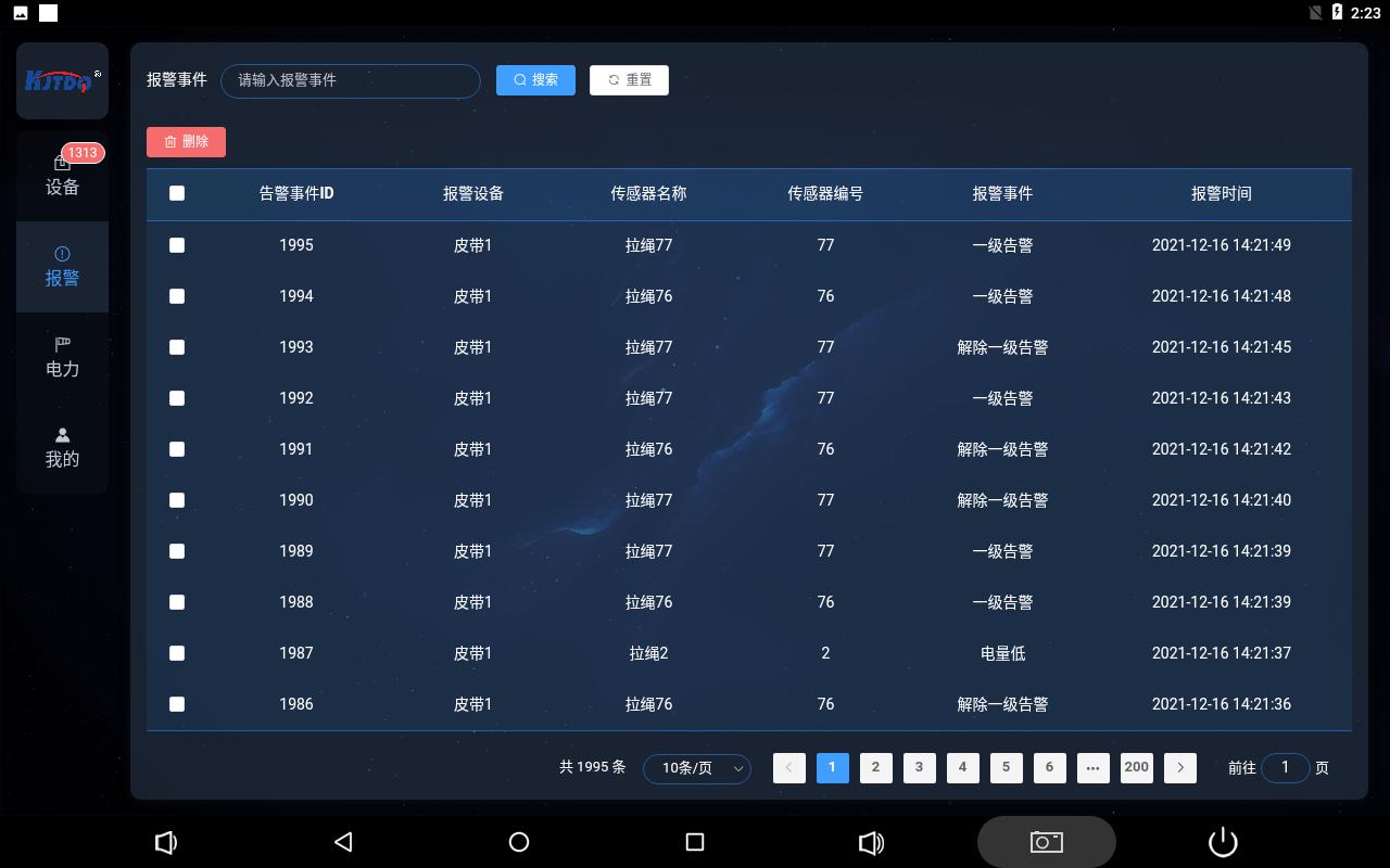 | 皮帶保護(hù)裝置電池狀態(tài)反饋報(bào)警及歷史記錄 | ||||