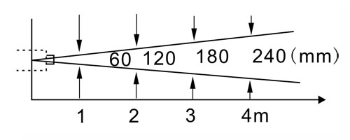本檢測(cè)器在現(xiàn)場(chǎng)安裝時(shí),可根據(jù)視場(chǎng)范圍,還料品種來設(shè)置距離,用目測(cè)法對(duì)準(zhǔn)。