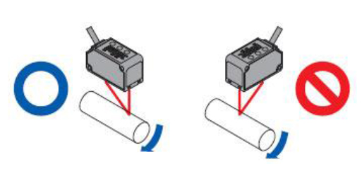 ? 測(cè)量時(shí),移動(dòng)的測(cè)量對(duì)象物的材質(zhì)、顏色極端不同的情況下,按照下圖所示方向進(jìn)行安裝,從而可將測(cè)量誤差控制在最小限度。