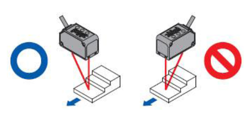 ? 移動(dòng)的檢測(cè)對(duì)象物存在段差的情況下,請(qǐng)按照以下方法進(jìn)行安裝,從而可在測(cè)量時(shí)抑制段差邊緣所產(chǎn)生的影響。
