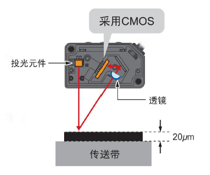 采用位移傳感器所使用的高精度CMOS影像傳感器,以及位移傳感器一直使用的本公司獨(dú)特的算法,實(shí)現(xiàn)了微型激光傳感器1mm/100mm的高精度