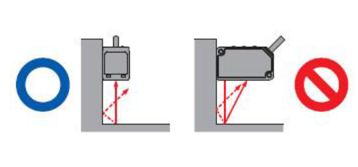 ? 請(qǐng)按照以下方法進(jìn)行安裝,以免墻面產(chǎn)生的多重反射光入光到受光部分。另外,墻面反射率較高的情況下,如改為無(wú)光澤的黑色,則效果更好。
