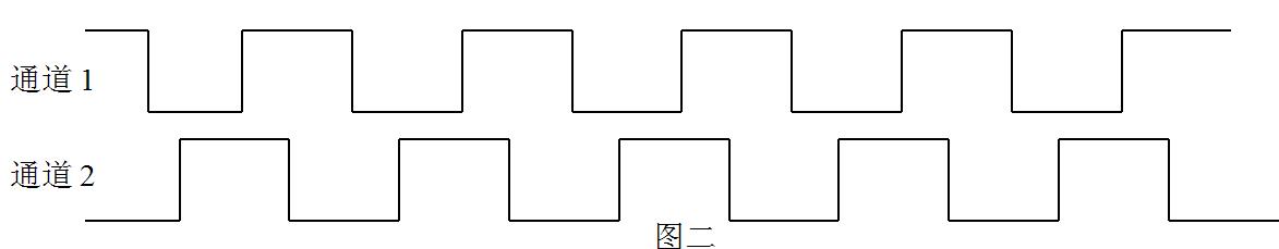 當(dāng)旋轉(zhuǎn)方向與圖四 所示方向相反時(shí),通道2波形將超前通道1波形90度,波形示意圖如下所示: