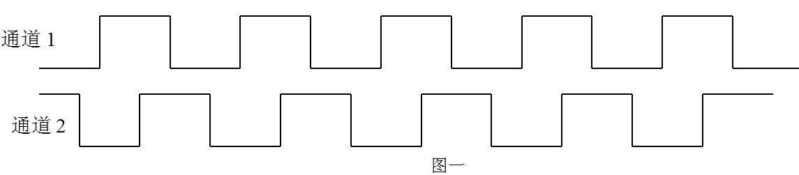 按 本說明書四中應(yīng)用示例安裝,當(dāng)旋轉(zhuǎn)方向如圖四所示定義為正轉(zhuǎn),輸出波形為通道1超前通道2 90度,波形示意圖如下所示: