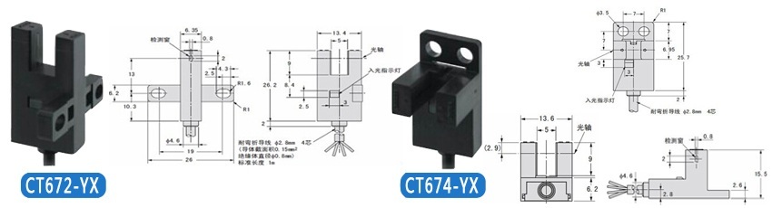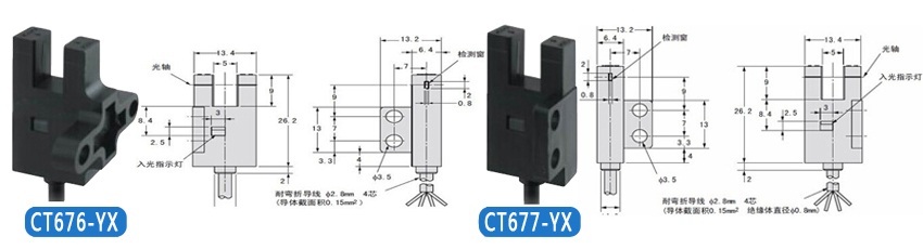 | KJT-CT671-YX 控制輸出 | 受光時(shí)紅色指示燈亮,NPN集電極無(wú)輸出;遮光時(shí)紅色指示燈滅,NPN集電極開(kāi)路輸出DC5V--24V 、 100mA以下,殘留電壓0.5V以下(負(fù)荷電流100mA時(shí))、殘留電壓0.3V以下(負(fù)荷電流40mA時(shí)) |