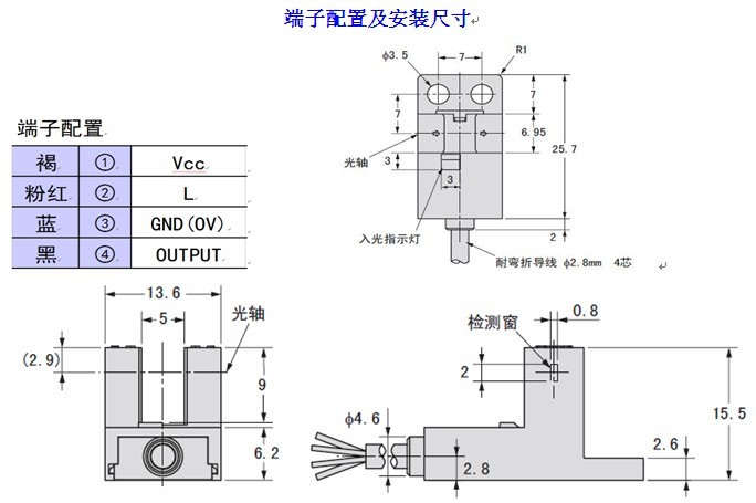 - 檢測(cè)距離:5mm(凹槽寬度)