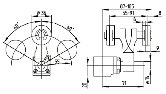 - ● :對耐溫型產品,滾輪可以安裝在軸兩個不同位置上