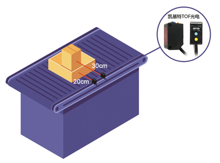 與依靠光量反饋檢測物體的傳統光電開關比較,使用TOF技術的KJT-FG30的光電傳感器有如下優點: